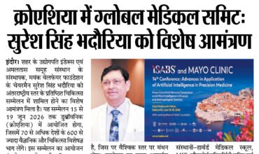Shri Suresh Singh Bhadoria, Chairman of the Index Group at Malwanchal University, was lauded for his exceptional contributions in the domains of education and health. -