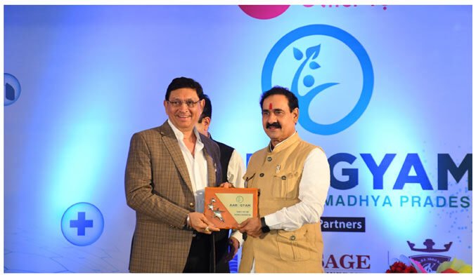 Home Minister of Madhya Pradesh, Shri Narottam Mishra, honoured Shri Suresh Singh Bhadoria in recognition of his outstanding contributions to health and education.