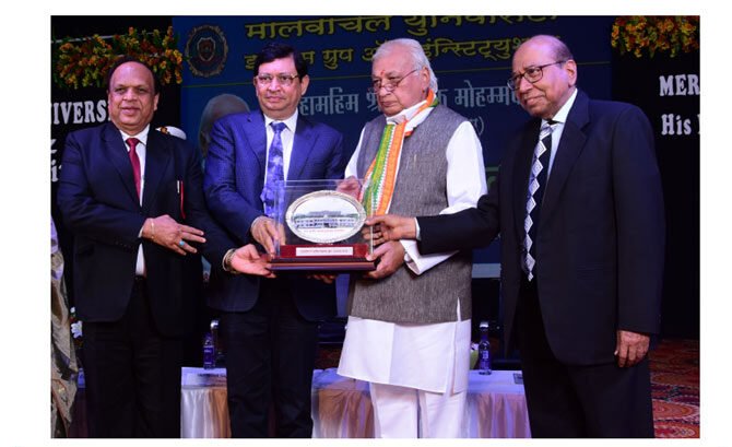 Honorable Governor of Kerala, Shri Arif Mohammed Sheikh, honoured Shri Suresh Singh Bhadoria in the presence of university leadership.