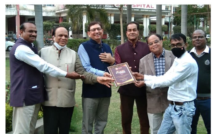 Chairman Shri Suresh Singh Bhadoria and Vice Chairman Shri Mayankraj Singh Bhadoria were honoured by Dr. Aruna V. Vanikar, Chairperson, National Medical Commission, for exceptional service during the Corona period.