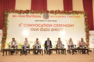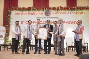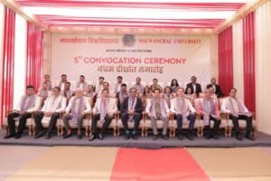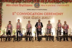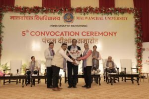 Malwanchal University successfully hosted its 5th Convocation Ceremony, marking a proud academic milestone and celebrating the achievements of 285 graduating medical students. The grand occasion brought together distinguished dignitaries, university leadership, faculty members, students, and their families in an atmosphere filled with pride, inspiration, and accomplishment. The ceremony was graced by Chief Guest Dr. Abhijat C. Sheth, Chairman of the National Medical Commission (NMC). Notably, this marked the first time Dr. Sheth attended a convocation at a private medical institution, reflecting the growing reputation and academic excellence of Malwanchal University in the field of medical education. His presence highlighted the institution’s commitment to quality training and its expanding contribution to healthcare education in India.
