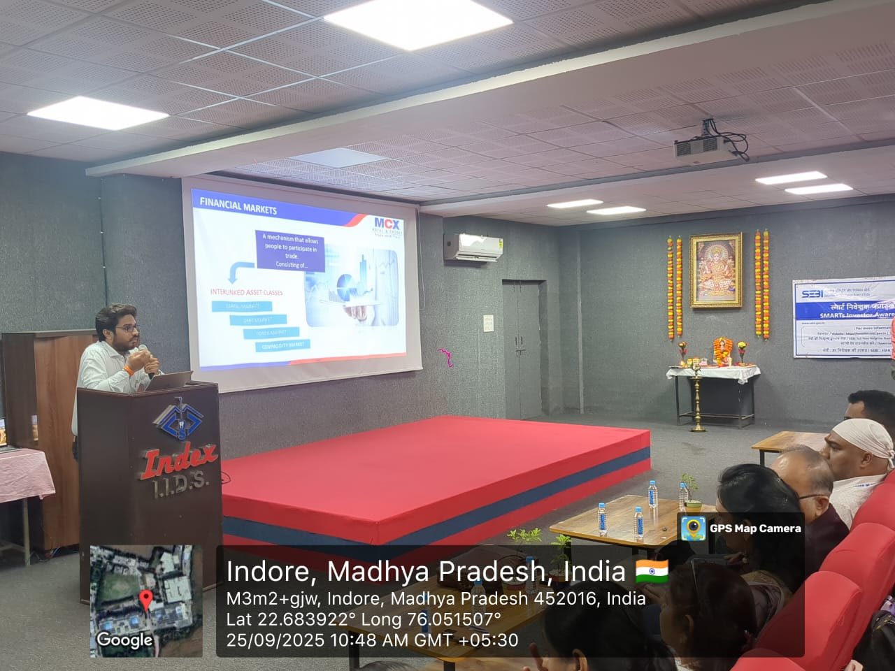The Index Institute of Management, Arts and Sciences, in collaboration with the Internal Quality Assurance Cell (IQAC) of Malwanchal University, successfully organized a seminar on Financial Literacy for Sustainable Growth on September 25. The seminar was conducted by SEBI Expert Trainers, Mr. Aman Agarwal and Mr. Manik Tekchandani, who shared their knowledge on financial planning, investment strategies, and fraud prevention. The program began with a warm welcome by Mr. Deepak Nikose and Ms. Diksha Guha Roy, followed by an insightful address from Principal Dr. Ajay Mishra. He emphasized that financial literacy is a vital life skill for students, helping them make informed choices, avoid financial pitfalls, and align personal growth with national progress.