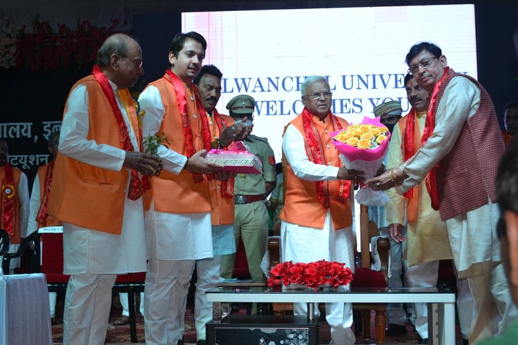 Shri N.K. Tripathi, Vice-Chancellor, Prof. Chancellor Dr. Sanjeev Narang, Pro-Vice-Chancellor Dr. Ramgulam Rajdan,