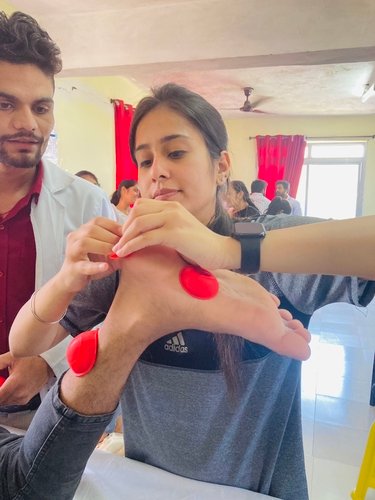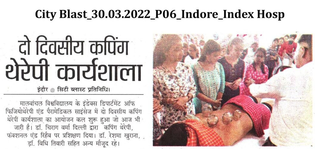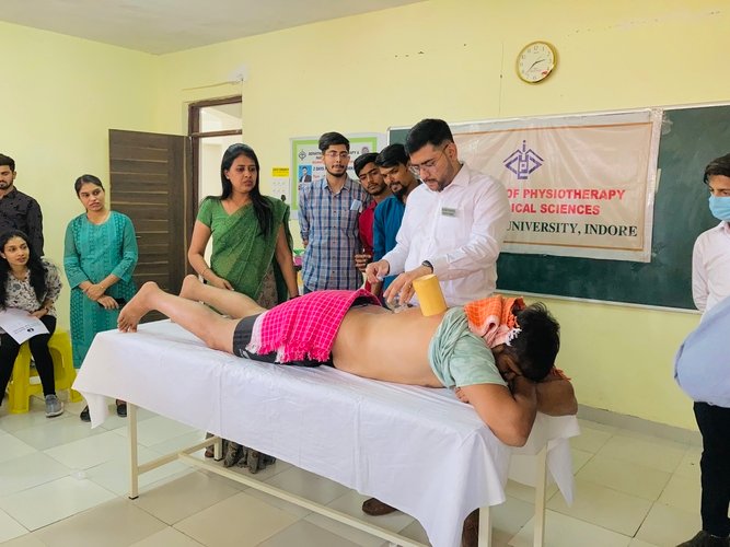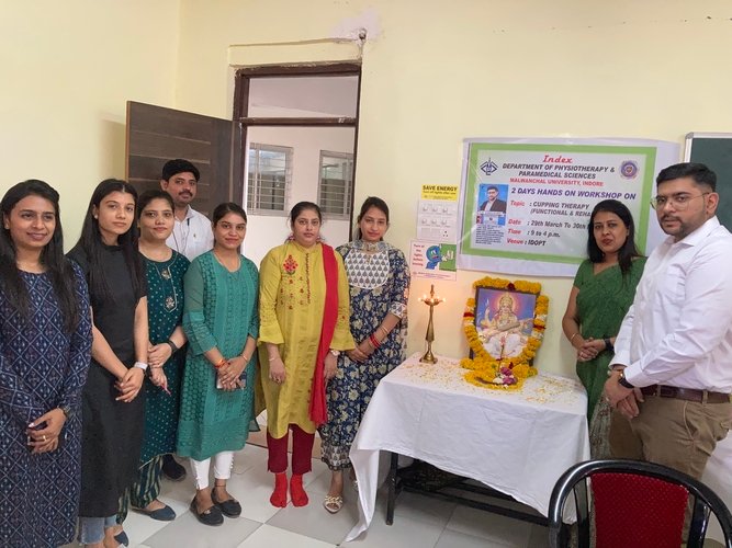 Two days hands on workshop were organized by Index Department of Physiotherapy and Paramedical Sciences, Malwanchal University, Indore on 29th March 2022 to 30th March 2022. The workshop started with lighting lamp, by Dr. Reshma Khurana, Principal, Index Department of Physiotherapy and Paramedical Science, Dr Chirag Verma (Resource Person) and all the faculties of college. Cupping therapy is an ancient form of alternative therapy that involves placing cups on the skin to create suction. This Suction is thought to improve the flow of energy in the body and facilitate healing.