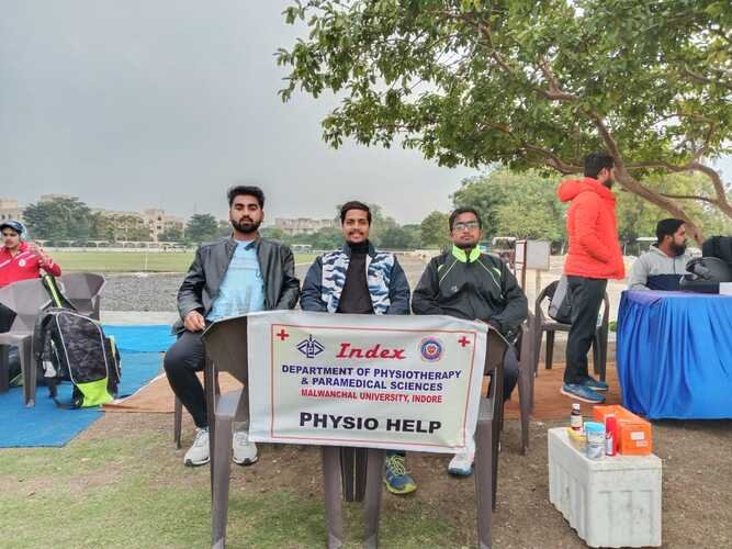 The Tournament started with an opening ceremony which was held at “The Emerald Heights International School”on 12th December 2022 All students had given on field treatment to players under the guidance of Dr. Reshma Khurana, Principal, Index Department of Physiotherapy and paramedical Sciences. Students treated and prepare athletes for their respective sports for better performance. They have seen many sports injuries such as ankle sprain, muscle soreness, tightness etc.