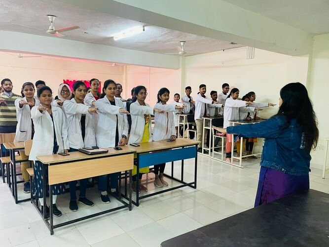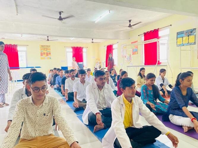 Holistic development especially for students is the flint stone on which the vision and mission of the college is laid. Apart from academic and non academic activities we have also inculcate sessions of yoga and meditation for relieving of stress and betterment of the students.To this effect, MP Paramedical council recommended to all medical colleges and paramedical Institutes to organized a “SAHAJA YOGA” session for students and faculties. Index Department of physiotherapy and paramedical sciences under the guidance of Dr. Reshma Khurana,Principal organized SHAJA YOGA and meditation sessions on 21st November 22 (Monday).The session was conducted by Dr. Sunil Jaiswal,