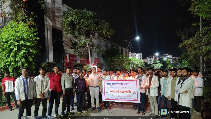 On 25th April 2025, the Index Department of Physiotherapy and Paramedical Sciences at Malwanchal University joined the entire university community in organizing a heartfelt candle march to pay tribute to the innocent tourists who lost their lives in the tragic terrorist attack in Pahalgam, Kashmir. The event commenced at 7 PM on campus and witnessed active participation from students, faculty members, and hostel residents associated with the department. With candles in hand and placards bearing messages of peace and unity, participants walked in solemn silence, showing their deep respect and solidarity with the victims and their families.The students of Physiotherapy
