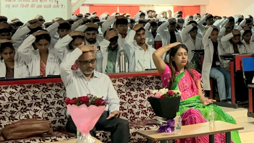 The Index Department of Physiotherapy and Paramedical Sciences (IDOPT), in collaboration with Sahaja Yoga Samiti, Indore, organized an enlightening seminar on Sahaja Yoga Meditation on 29th July 2025 at the 4th Floor, Index Hospital. The session, held from 11:00 am to 12:00 pm, featured Dr. Sunil Jaiswal was the guest speaker and saw active participation from students of BPT, BMLT, and DMLT programs. The program was held under the inspiration and guidance of Shri Suresh Singh Bhadoria, Chairman, Index Group of Institutions, whose vision emphasizes holistic education and overall well-being for students. Dr. Jaiswal introduced Sahaja Yoga as a path