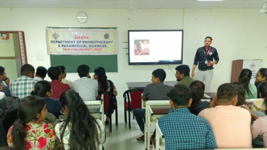 August 23, 2024, marked National Space Day, commemorating Chandrayaan-3's historic landing on the lunar surface. Index Department of Physiotherapy and Paramedical Sciences College celebrated this milestone with a captivating lecture and presentation.The event began with a comprehensive presentation, outlining Chandrayaan-3's mission objectives, spacecraft design, and the intricacies of its precision landing. The speaker highlighted India's remarkable achievements in space technology, emphasizing the significance of this success.The lecture delved into the scientific and technological advancements enabled by Chandrayaan-3, including:Lunar surface mapping and resource identificationAdvancements in propulsion and navigation systemsEnhanced understanding of the Moon's geology and compositionStudents actively participated in the Q&A