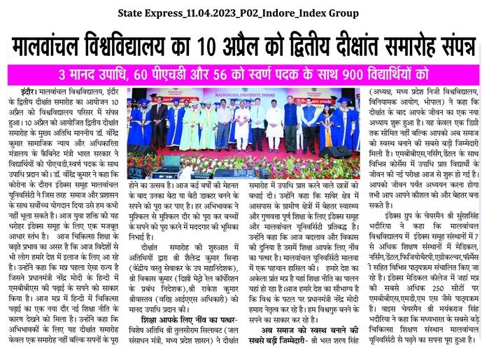 Putting the aforementioned quote as a seed of hope in the hearts of the students, the second Convocation ceremony of Malwanchal University was successfully conducted on April 10, 2023 the convocation served as a momentous occasion to celebrate the accomplishments of our graduating students & recognize their hard work, dedication & achievements.