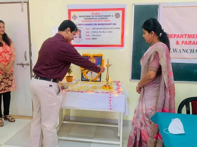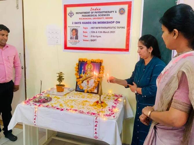 Myofascial Release and therapeutic taping is proven techniques for pain management and it is used in almost every field of the physiotherapy. To enhance our future physiotherapist skill under the Guidance of Dr. Reshma Khurana we have conducted two days hands on MET, MFR and Taping on 12th March 2022 to 13th March 2022 at Index Department of Physiotherapy and Paramedical sciences, Malwanchal University. Dr Sanjeev Jha, was the resource person and in order to shared his knowledge and practical approaches of the techniques among the students. He demonstrated and shared detailing about the techniques (MET, MFR and Taping). Students also practiced the techniques. It was an interesting and interactive sessions for the students.