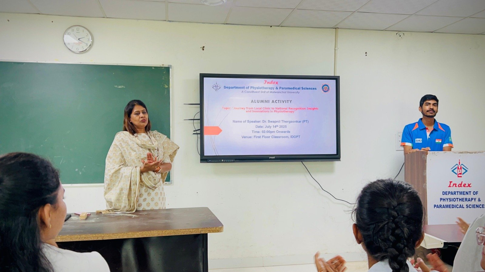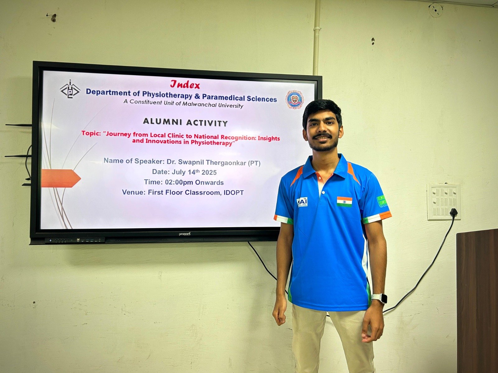 The Index Department of Physiotherapy and Paramedical Sciences, under Malwanchal University, continues to set new benchmarks in academic and professional excellence. One of its shining alumni, Swapnil Thergavkar, has recently made the institution proud by being selected as the Physiotherapist for the Indian Para Table Tennis Team. Representing India on an international platform, Swapnil served during a prestigious championship held in Taiwan, offering his expert physiotherapy services to globally ranked athletes. His achievement stands as a symbol of the department’s focus on hands-on clinical training and professional development.