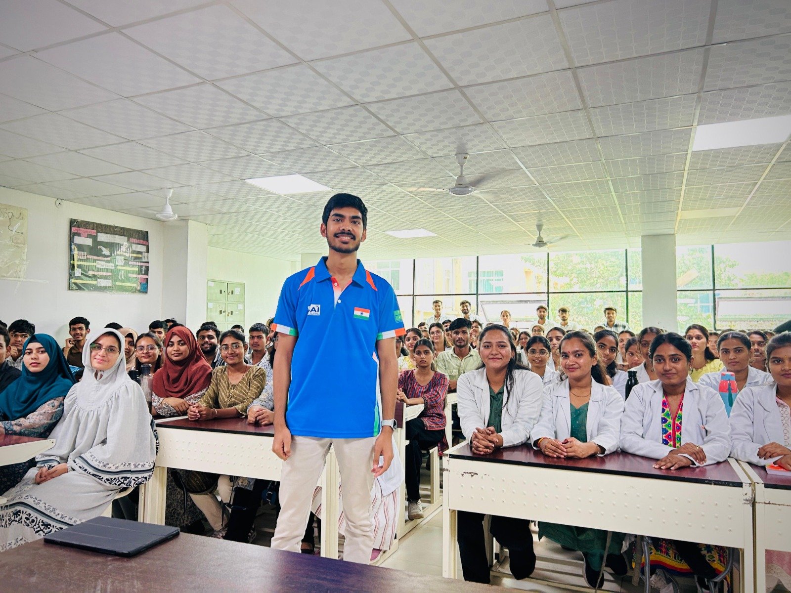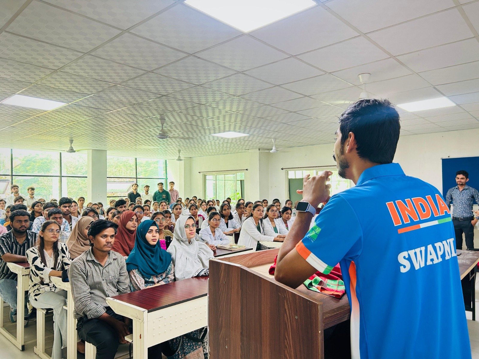 To honor this success, a felicitation ceremony was held where university dignitaries including Dr. Sanjeev Narang (Vice Chancellor), Dr. Lokeshwar Singh Jodhana (Registrar), Dr. Rajendra Singh (Deputy Registrar), Dr. Reshma Khurana (Principal), and Dr. Sandeep Patel congratulated Swapnil and acknowledged his contribution to sports physiotherapy at the international level. During the session, Swapnil shared his enriching experiences, highlighting the challenges and learning opportunities that come with working with para-athletes. Dr. Reshma Khurana emphasized that a skilled physiotherapist plays a key role in enhancing athlete performance, injury prevention, and recovery—especially in the para-sports domain.