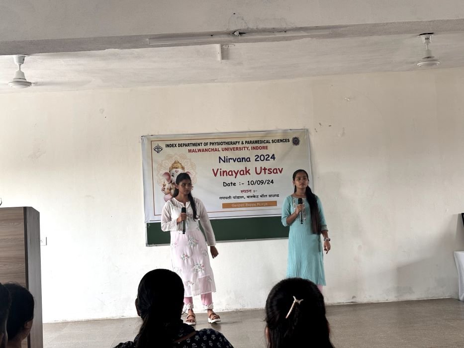 Index Department of Physiotherapy and Paramedical Sciences College witnessed a magnificent 10-day celebration of Ganesh Chaturthi, aptly titled NIRVANA 2024. The festivities commenced on September 7, 2024, with the grand “Aagman” ceremony, welcoming Lord Ganesha into the college premises amidst colorful crackers, sweets, and sound shows.