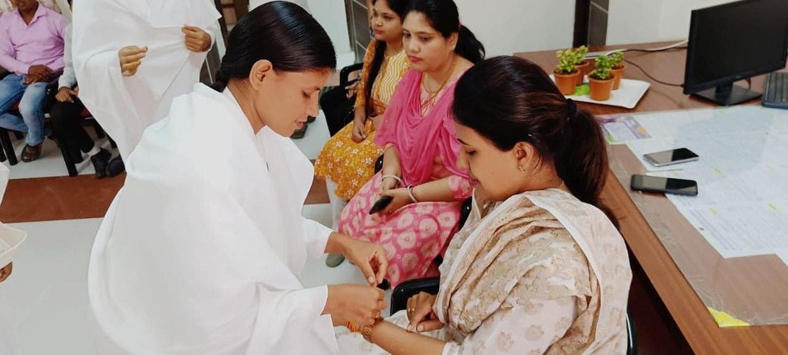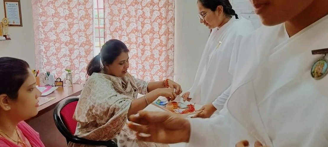 The Brahma Kumaris organization celebrating Rakshabandhan by tying rakhis is a beautiful gesture that reflects the festival’s essence of strengthening relationships and fostering a sense of protection and care among individuals. The act of tying a rakhi symbolizes the bond of love and responsibility. The Brahma Kumaris might have incorporated this tradition as a way to promote values of unity, goodwill, and harmony within their community.