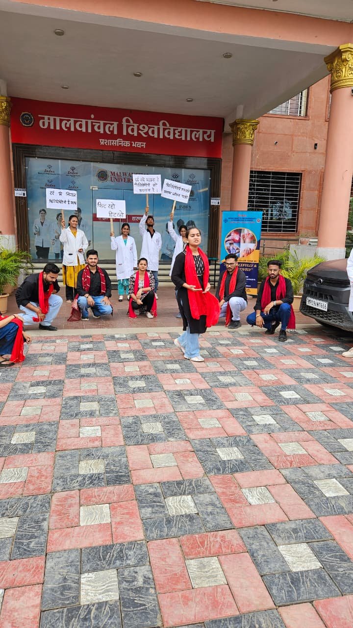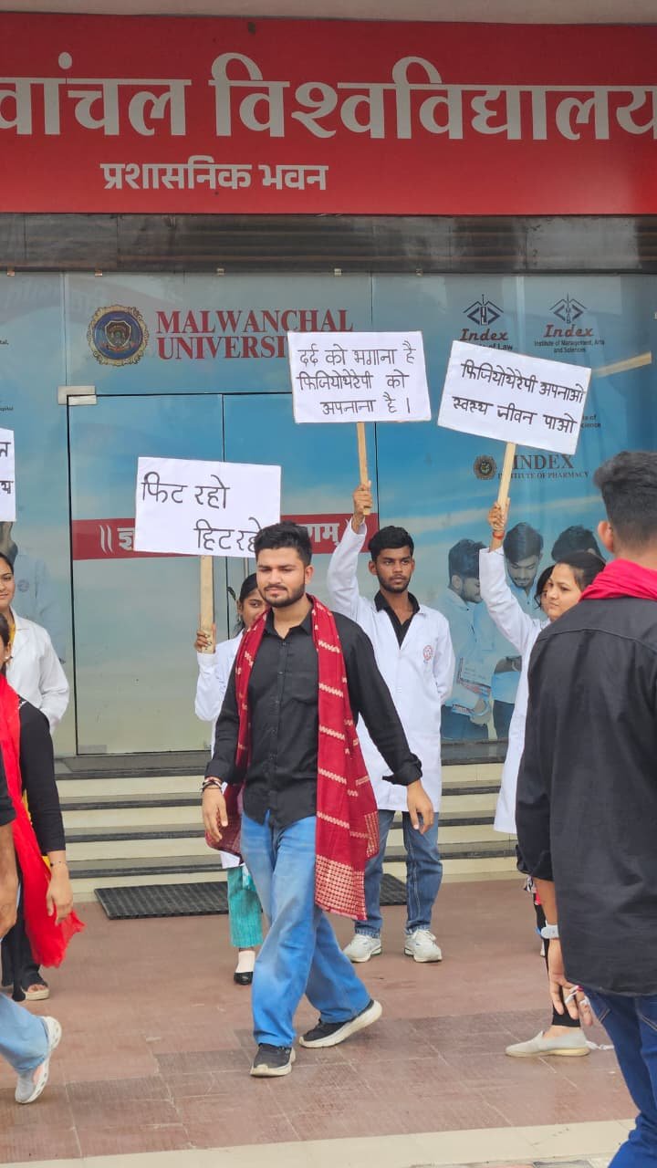 The Index Department of Physiotherapy and Paramedical Sciences celebrated World Physiotherapy Day 2025 on 8th September 2025 at the Malwanchal University Campus, IMCHRC, with this year’s theme: “Healthy Ageing.” The program began with an insightful introduction highlighting the importance of physiotherapy in promoting mobility, preventing falls, and enhancing the quality of life for elderly individuals. The session emphasized that physiotherapy is not just a treatment but a preventive approach to maintaining health and independence in later years. The audience was educated on various aspects of healthy ageing, including regular physical activity, balanced nutrition, and lifestyle modifications, underlining the vital role of physiotherapists in society. The event was organized under the guidance of Chairman Shri Suresh Singh Bhadoria and Vice Chairman Mayank Raj Singh Bhadoria, who encouraged initiatives to promote health awareness and community engagement.
