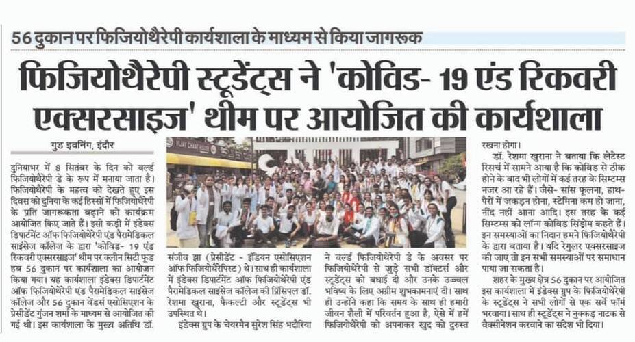 Index Department of Physiotherapy and Paramedical Sciences College conducted a workshop on the theme ‘Covid-19 and Recovery Exercise’ at Clean City Food Hub 56 shop.